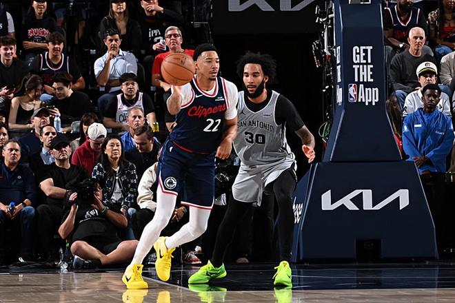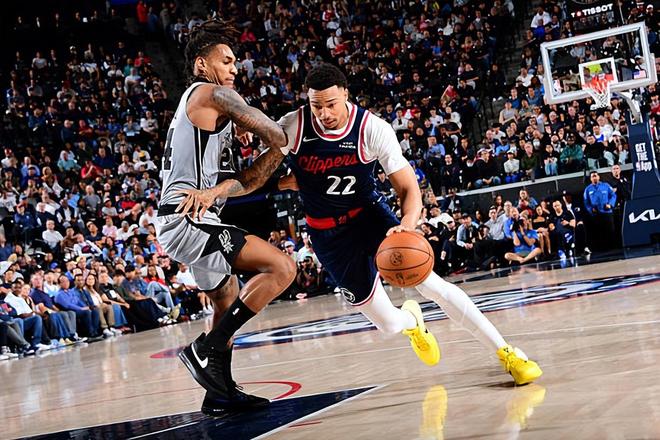 本场比赛中,虽然快船输掉了比赛,但是球队的替补侧翼新星乔丹-米勒(Jordan Miller)的表现还是相当不错的。米勒全场出场26分20秒,投篮13中10,三分线外1中1,罚球1中1,以超高的效率得到了22分9篮板3助攻的数据,其中还包括了4个前场篮板,还有1次犯规,正负值为+3。米勒在进攻端又一次展现出了自己全面的得分能力,他有着不俗的突破能力和终结能力,他在节奏和速率方面的变化依然非常有效,而且他也具备一定的中远距离投篮威胁。除此之外,米勒也是有着不俗的传球能力和组织能力的,他在进攻端的贡献度其实非常高。米勒在前后场篮板争抢方面的表现也是值得肯定的,同样是起到了很好的效果的。至少在本场比赛中,米勒算是起到了极其关键的作用。要不是有他,快船估计要遭遇一场惨败了,最终的分差可能也会非常可怕。